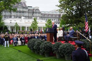 وقال ترمب معتلياً منصة ثُبّتت في الحديقة الجنوبية للبيت الأبيض: «يا له من يوم بريطاني جميل».