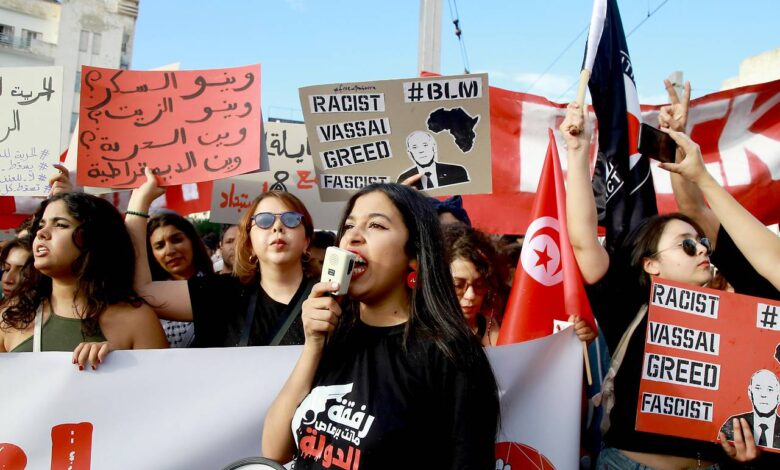 نساء يتظاهرن في تونس ضد الرئيس التونسي قيس سعيد