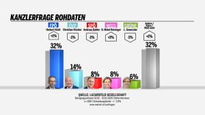 شيء واحد على الفور: بينما يمكن لحزب الشعب أن يكتسب تقدما بعد خطاب كريستيان شتوكر، إلا أن الأمور لا تبدو جيدة مع قيم المستشار الشخصية: إذا كان بإمكان النمساويين انتخاب مستشارهم مباشرة، فسيكون الفائز الواضح هو هربرت كيكل. يحقق المتقدم في حزب الأحرار مكاسب مرة أخرى في استطلاع لازارسفيلد، ويرتفع إلى نسبة مذهلة بلغت 32٪ (+1). وبذلك يعزز كيكل حقه في منصب المستشار – فهو الآن متقدم بفارق كبير على المنافسين.