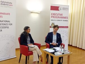 نظمت الأكاديمية الدبلوماسية بفيينا، مساء الخميس، محاضرة حول السياسة التجارية الأمريكية بعد انتخابات الرئاسة تحت عنوان( هارييس أم ترامب- السياسية التجارية الأمريكية بعد الانتخابات).