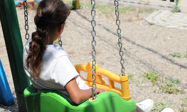 حديقة للأطفال في مركز العبور المؤقت للمهاجرين واللاجئين “Vinojug” في غيفغيليا، مقدونيا الشمالية.