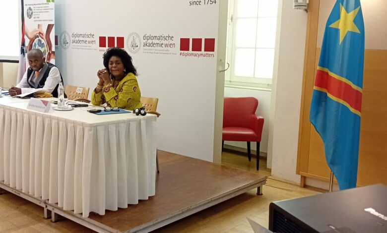 في إطار الدبلوماسية النشطة لجمهورية الكونغو الديمقراطية، ألقت السفيرة لويسا نزشنجا رامازاني، لدي ألمانيا، محاضرة مساء\ الجمعة بمقر الأكاديمية الدبلوماسية بفيينا،نظمتها الهيئة الدولية للتعاون من أجل التنمية البشرية، بالتعاون مع الأكاديمية، حول مجمل الأوضاع والقضايا والتحديات التي تواجهها بلادها حضرها عدد كبير من الدبلوماسيين ورجال الصحافة والإعلام والجاليات الأفريقية بالنمسا.