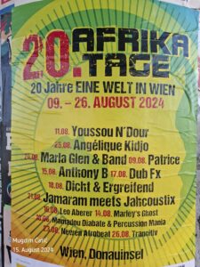 تشهد جزيرة الدانوب بفيينا مهرجان أيام أفريقيا ال 20 الذي ينظمه الشاب المصري مدحت عبد الحميد ويشمل ثقافات وعادات وتقاليد الشعوب اأفريقية في مقدمتها مصر والمغرب وتونس.