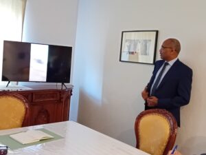 السفير ركز علي ضحايا الصراع الدائر في السودان من المدنيين الذين تأثروا وقتلوا علي يد مايسمي بقوات الدعم السريع وعرض بعض من مقاطع الفيديو التي تبين مدي الجرم الذي ترتكبه قوات الدعم السريع